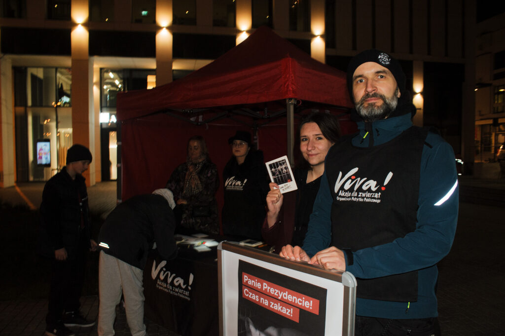 Potem już tradycyjnie pojawiliśmy się ze stoiskiem m.in. na Igrzyskach Wolności, a także zorganizowaliśmy akcję pisania pocztówek do prezydenta Karola Nawrockiego z apelem, aby nie wetował ustawy zakazującej hodowli zwierząt na futra.