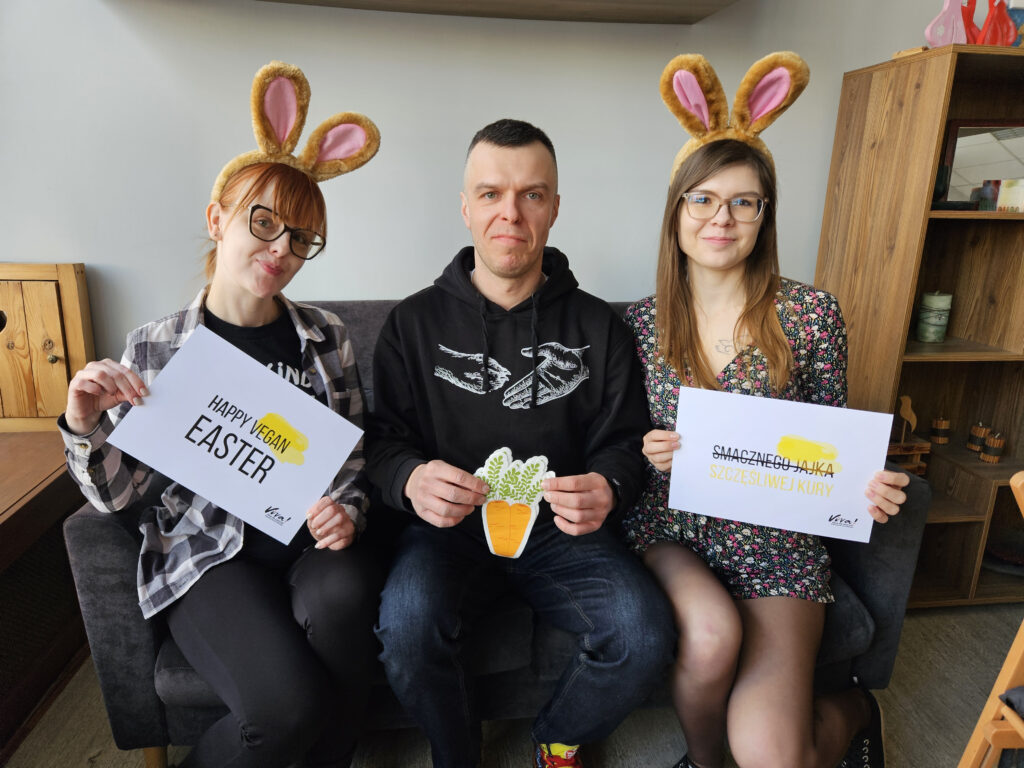 Jak co roku przed świętami wielkanocnymi, nasi wolontariusze zorganizowali w całej Polsce Veganoce. To wydarzenia na których smakujemy dania kuchni roślinnej w wersji świątecznej, dzielimy się przepisami i wiedzą. Na Veganocy pojawiły się osoby, które zmieniły lub zmieniają swoje nawyki żywieniowe, a także ci, którzy po prostu chcą urozmaicić swoje świąteczne menu.
